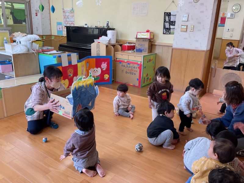 11月の誕生日会では職員の出し物のパペットを見たり、音楽に合わせてマラカスを振って 楽しみましたよ(^^♪ |